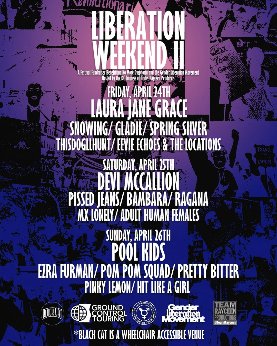 liberation weekend ii is the second annual two-day/three-night trans rights music festival fundraiser benefiting no more dysphoria and the gender liberation movement held in washington, dc.